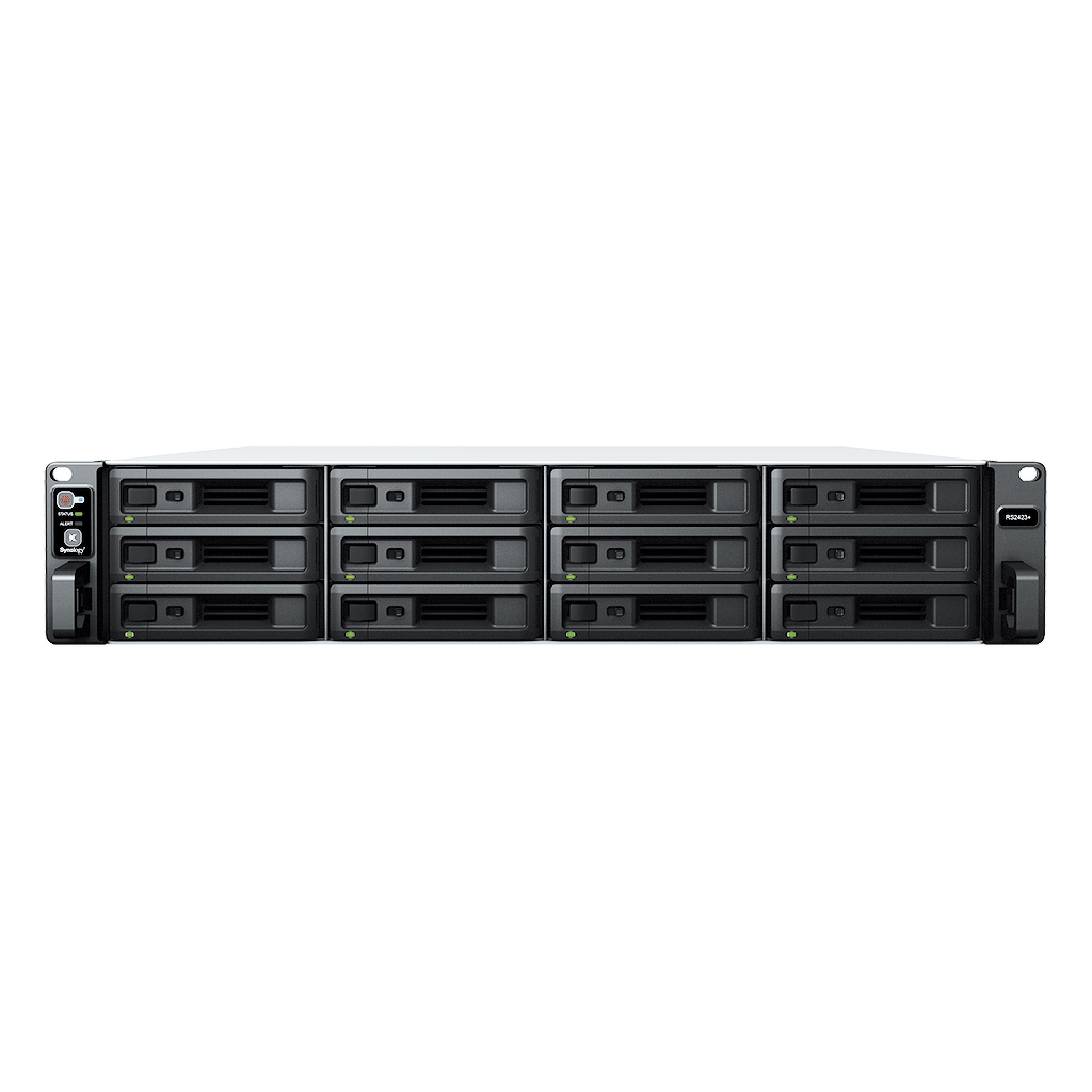 12-kieszeniowe urządzenie RS2423+/RS2423RP+ o wysokości 2U można w prosty sposób dostosować do środowiska użytkowania, niezależnie od tego, czy potrzebna jest większa wydajność, szybsza praca w sieci czy większa pojemność pamięci masowej.