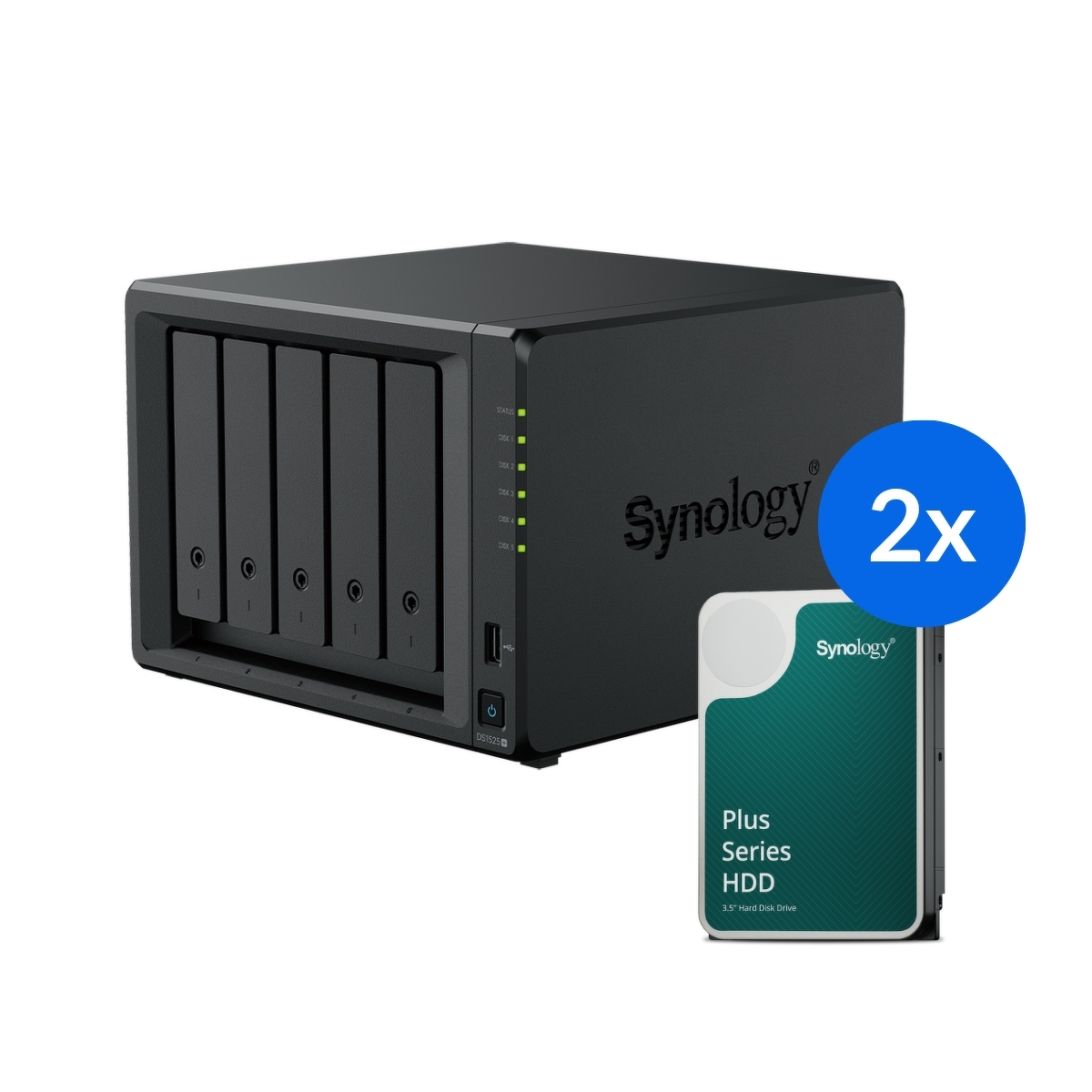Synology DS1525+ /8T | 5-zatokowy serwer NAS w zestawie z dyskami o łącznej pojemności 8TB, Tower