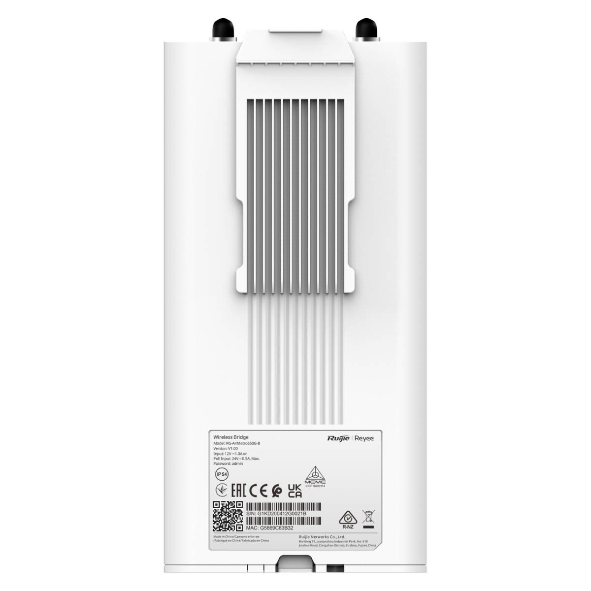 Ruijie Reyee RG-AirMetro550G-B | Most bezprzewodowy – Stacja, 2 port, 2xGE, 5GHz, 876Mbps, Zewnętrzny, 24V PoE/12V DC, IP55, Cloud