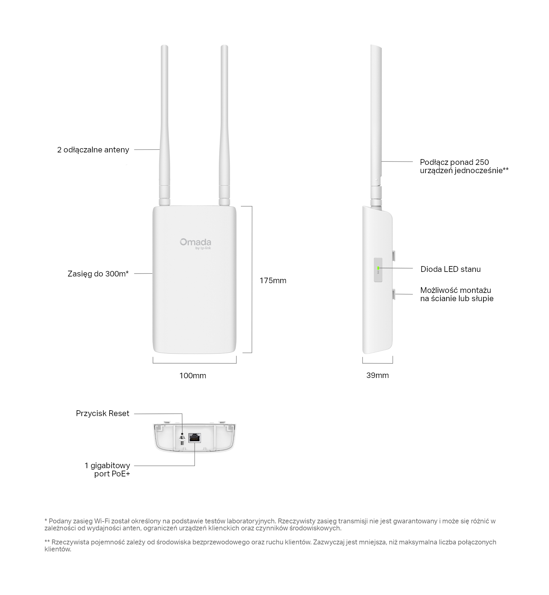 • Duży zasięg: Pokrycie siecią bezprzewodową do 300 m